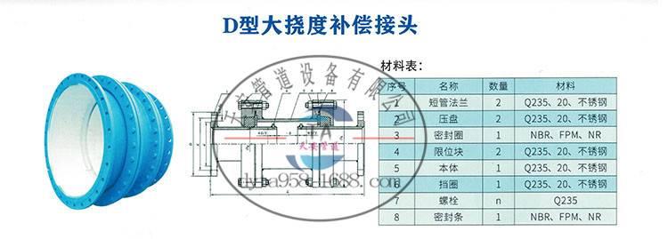 D型大挠度松套补偿接头可以在一定范围内轴向膨胀和收缩,还可以克服不同轴向上的管对接在一定出发点内导致的偏移,巨大地便利了阀管的安装和拆卸。具有以下机能:补偿和吸收管道的轴向,横向和角向热变形;吸收装置振动,减小装置振动对管道的影响;吸收地震和地面沉降引起的管道变形,对温差引起的远距离管道的调整具有很好的效用。