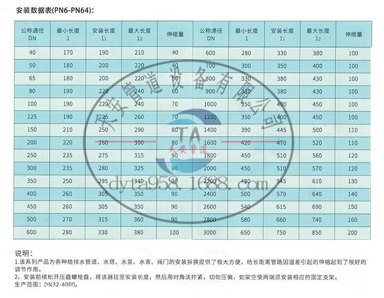 套筒式膨胀机可以在一定范围内轴向膨胀和收缩,还可以克服不同轴向的管对接在一定出发点范围内引起的错误,大大便捷了阀门和管路的安装和拆卸,并且容许管道中的膨胀和收缩量。它可以自由地膨胀和收缩。一旦超过指定的膨胀和收缩量,它将马上充当限制器,以保证管道的安全运行。