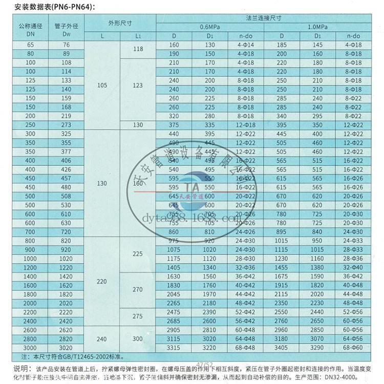 法兰松套伸缩缝由阀体,压盖,密封环和紧固件组成,包括一个阀体,一个压盖,两个密封环,每个@@@。插座也适用于与钢管,铸铁管,螺柱螺母连接。,pac管,abs管等