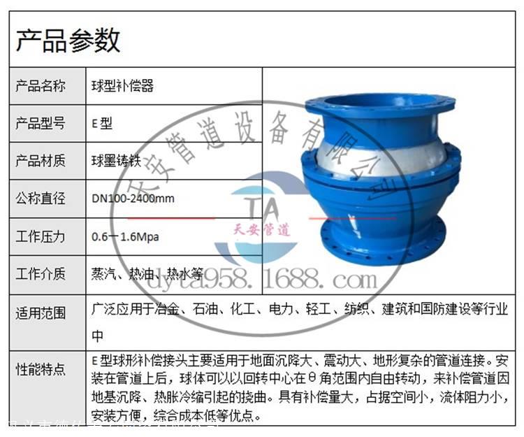 e型球形补偿接头是化解管道热胀冷缩的一种装置,可普遍用于冶金,原油,化工,电力,轻工,纺织,建筑物和国防建筑物等行业。