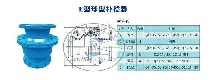 e型球面补偿接头主要由球壳,密封圈,压盖,螺栓,螺母和球体构成,主要适用于地面沉降大,振动大,地貌繁杂的管道连结,安装在管道上后,球体可以在与旋转中心成视角θ的范围内自由旋转,以补偿由基本和热胀冷缩沉降引起的管道挠曲。